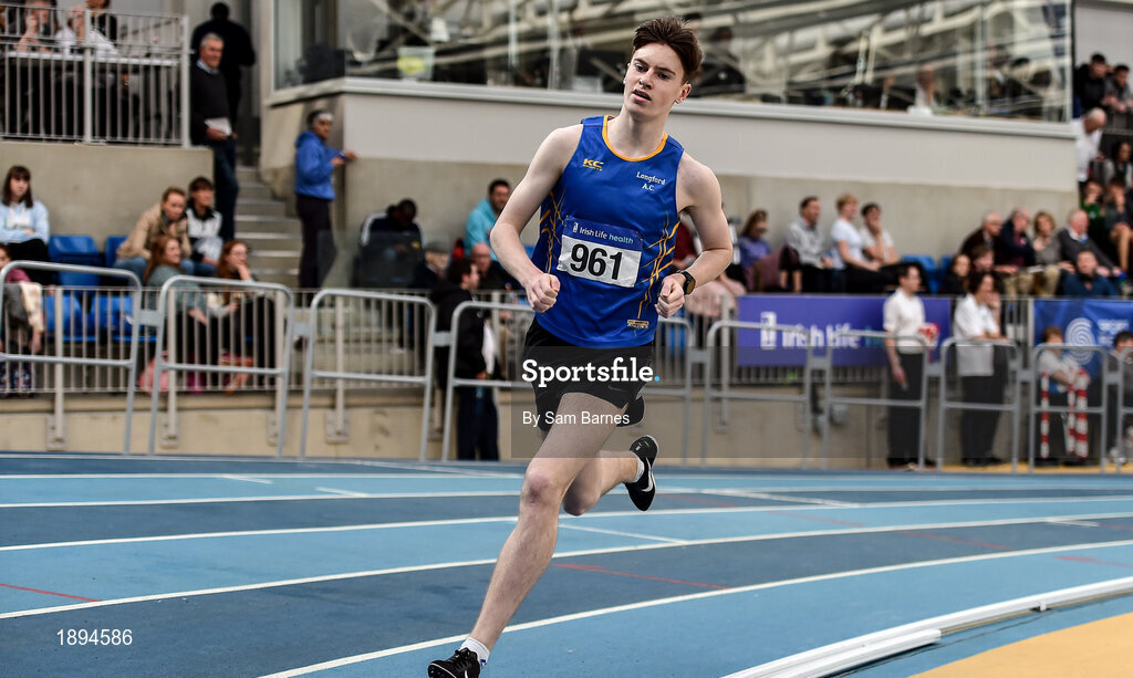 1 March 2020; Cian McPhillips of Longford AC, competing in the Senior Men's 1500m event during Day Two of the Irish Life Health National Senior Indoor Athletics Championships at the National Indoor Arena in Abbotstown in Dublin. Photo by Sam Barnes/Sportsfile