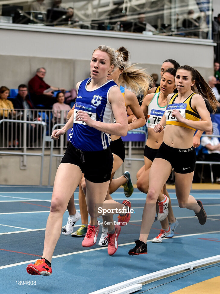 1 March 2020; Susan McManus of Dublin City Harriers AC, leads the field whilst competing in the Senior Women's 1500m event during Day Two of the Irish Life Health National Senior Indoor Athletics Championships at the National Indoor Arena in Abbotstown in Dublin. Photo by Sam Barnes/Sportsfile