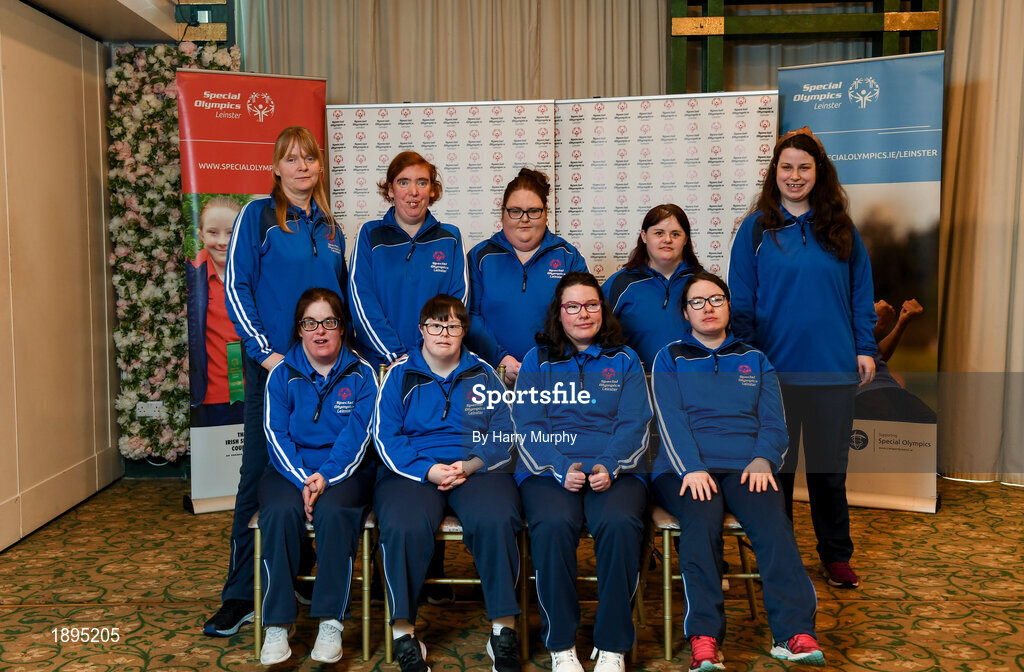3 March 2020; Special Olympics Team Leinster set their sights on Northern Ireland. Pictured is the women's third team Deirdre Dunne, Samantha Duggan, Debroah McGovern, Amy Crofton, Michelle Dunne, Emma Murray, Bridget Power and Joanne Power at the launch at the Keadeen Hotel in Newbridge, Kildare. Photo by Harry Murphy/Sportsfile