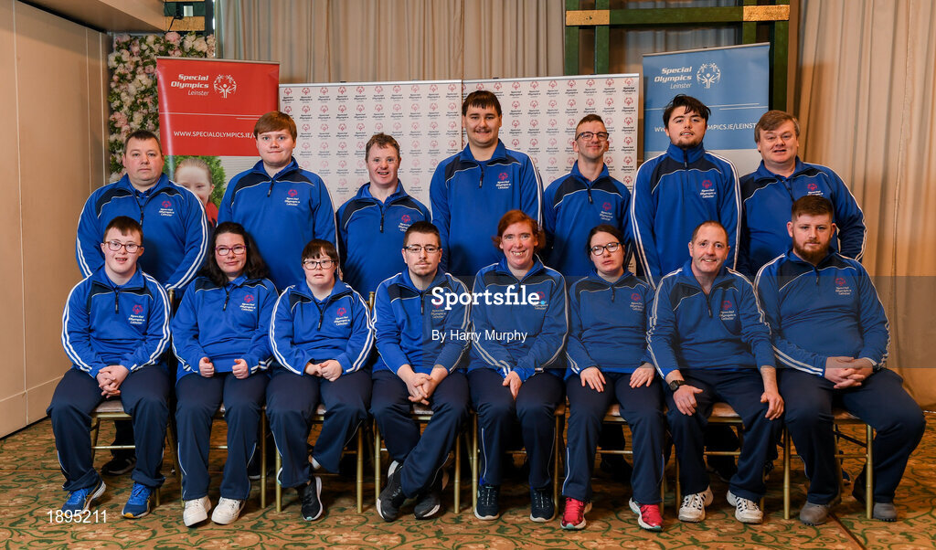 3 March 2020; Special Olympics Team Leinster set their sights on Northern Ireland. Pictured is the Navan Arch, Meath, athletes, Michelle Dunne, Emma Murray, Bridget Power, Joanne Power, Liam Brady, Francis Power, Stuart Walsh, Daragh Hastings, John Butler, Karl McMahon, Cooper Collins, Jamie Reilly and Maciej Ledzki at the launch at the Keadeen Hotel in Newbridge, Kildare. Photo by Harry Murphy/Sportsfile
