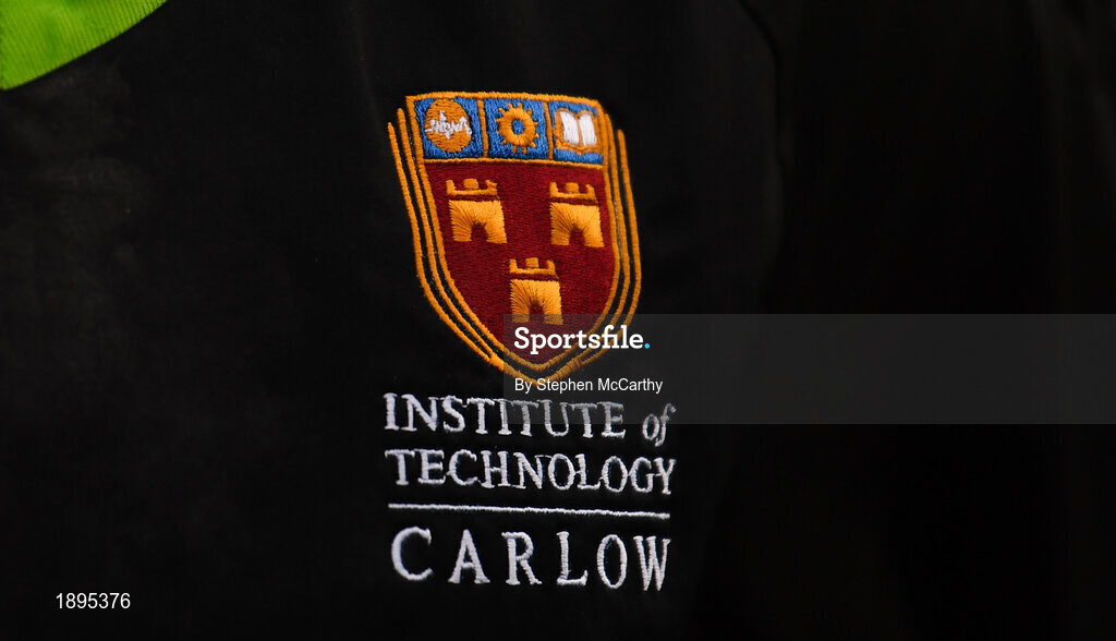 3 March 2020; A detailed view of the IT Carlow crest during the Rustlers CFAI Cup Final match between IT Sligo and IT Carlow at Athlone Town Stadium in Athlone, Co Westmeath. Photo by Stephen McCarthy/Sportsfile