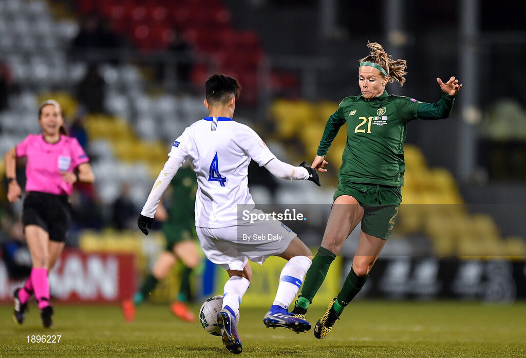 5 March 2020; Ruesha Littlejohn of Republic of Ireland in action against Anastasia Gkatsou of Greece during the UEFA Women's 2021 European Championships Qualifier match between Republic of Ireland and Greece at Tallaght Stadium in Dublin. Photo by Seb Daly/Sportsfile