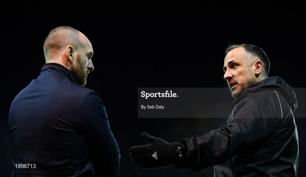 6 March 2020; Cork City manager Neale Fenn, right, and St Patrick's Athletic manager Stephen O'Donnell prior to the SSE Airtricity League Premier Division match between St Patrick's Athletic and Cork City at Richmond Park in Dublin. Photo by Seb Daly/Sportsfile