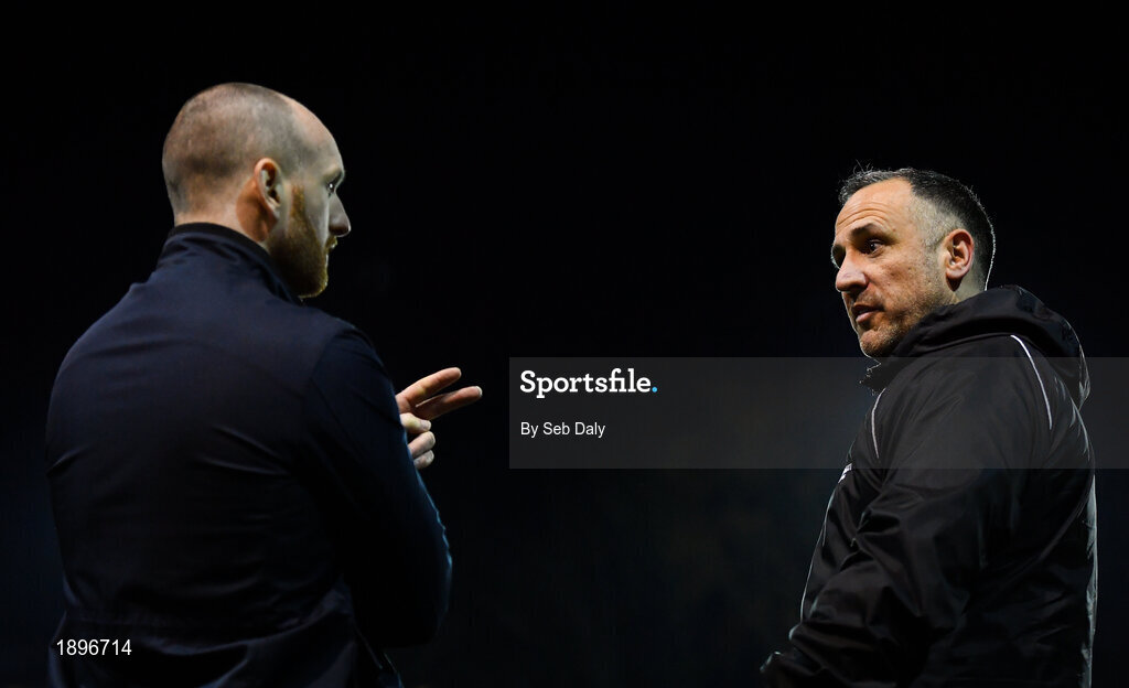 6 March 2020; Cork City manager Neale Fenn, right, and St Patrick's Athletic manager Stephen O'Donnell prior to the SSE Airtricity League Premier Division match between St Patrick's Athletic and Cork City at Richmond Park in Dublin. Photo by Seb Daly/Sportsfile