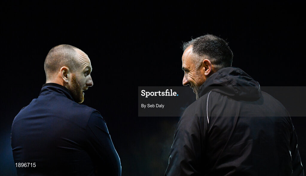 6 March 2020; Cork City manager Neale Fenn, right, and St Patrick's Athletic manager Stephen O'Donnell prior to the SSE Airtricity League Premier Division match between St Patrick's Athletic and Cork City at Richmond Park in Dublin. Photo by Seb Daly/Sportsfile
