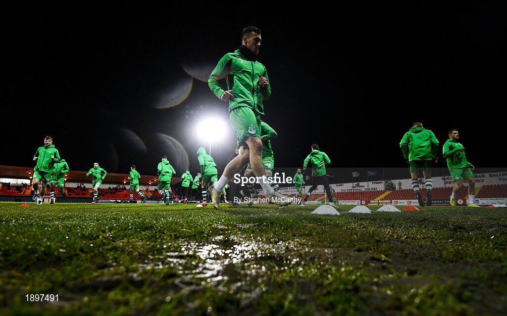 7 March 2020; Aaron Greene of Shamrock Rovers warms-up with his team-mates ahead of the SSE Airtricity League Premier Division match between Sligo Rovers and Shamrock Rovers at The Showgrounds in Sligo. Photo by Stephen McCarthy/Sportsfile