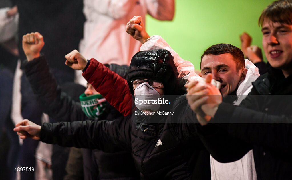 7 March 2020; Shamrock Rovers supporters celebrate after their side's first goal, scored by Jack Byrne, during the SSE Airtricity League Premier Division match between Sligo Rovers and Shamrock Rovers at The Showgrounds in Sligo. Photo by Stephen McCarthy/Sportsfile