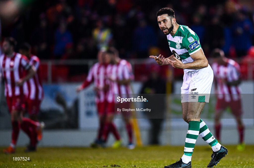 7 March 2020; Roberto Lopes of Shamrock Rovers encourages his players after conceding their side's first goal during the SSE Airtricity League Premier Division match between Sligo Rovers and Shamrock Rovers at The Showgrounds in Sligo. Photo by Stephen McCarthy/Sportsfile