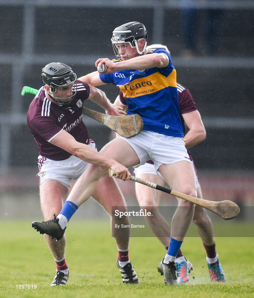 8 March 2020; Dillon Quirke of Tipperary in action against Aidan Harte, left, and Cathal Mannion of Galway during the Allianz Hurling League Division 1 Group A Round 3 match between Galway and Tipperary at Pearse Stadium in Salthill, Galway. Photo by Sam Barnes/Sportsfile
