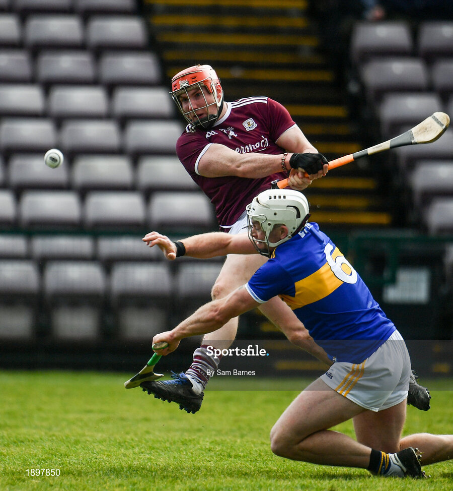 8 March 2020; Conor Whelan of Galway shoots to score his side's second goal despite the efforts of Padraic Maher of Tipperary during the Allianz Hurling League Division 1 Group A Round 3 match between Galway and Tipperary at Pearse Stadium in Salthill, Galway. Photo by Sam Barnes/Sportsfile