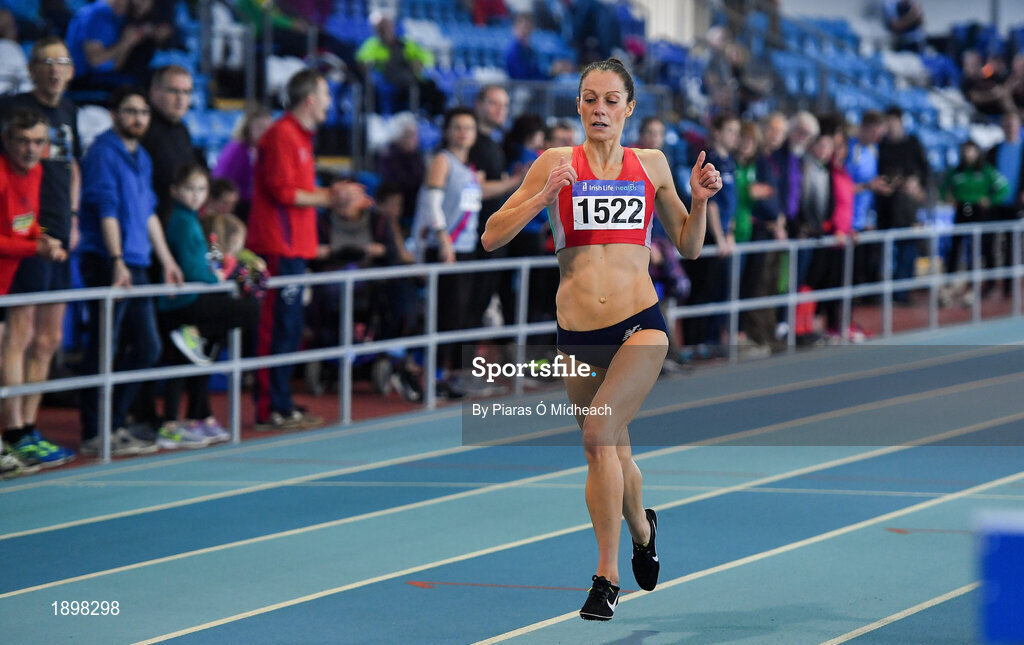 8 March 2020; Kelly Neely of City of Lisburn AC, Down, competing in the M40 3000m event during the Irish Life Health National Masters Indoors Athletics Championships at Athlone IT in Athlone, Westmeath. Photo by Piaras Ó Mídheach/Sportsfile