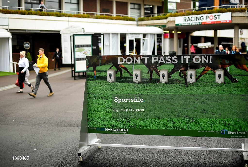 10 March 2020; A general view of a hand sanitizing dock prior to racing on day one of the Cheltenham Racing Festival at Prestbury Park in Cheltenham, England. Photo by David Fitzgerald/Sportsfile