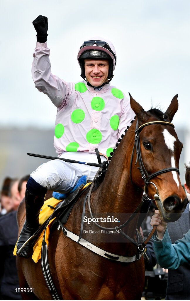 12 March 2020; Jockey Paul Townend celebrates after winning the Ryanair Chase on Min during Day Three of the Cheltenham Racing Festival at Prestbury Park in Cheltenham, England. Photo by David Fitzgerald/Sportsfile