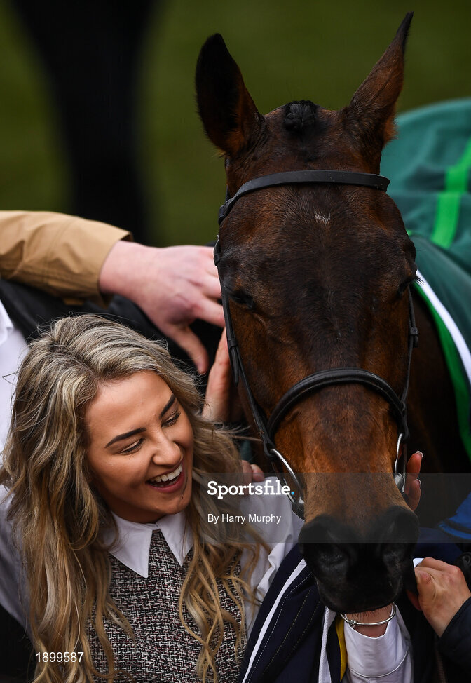 12 March 2020; Syndicate member Anna Morgan celebrates with Lisnagar Oscar after winning the Paddy Power Stayers' Hurdle on Day Three of the Cheltenham Racing Festival at Prestbury Park in Cheltenham, England. Photo by Harry Murphy/Sportsfile