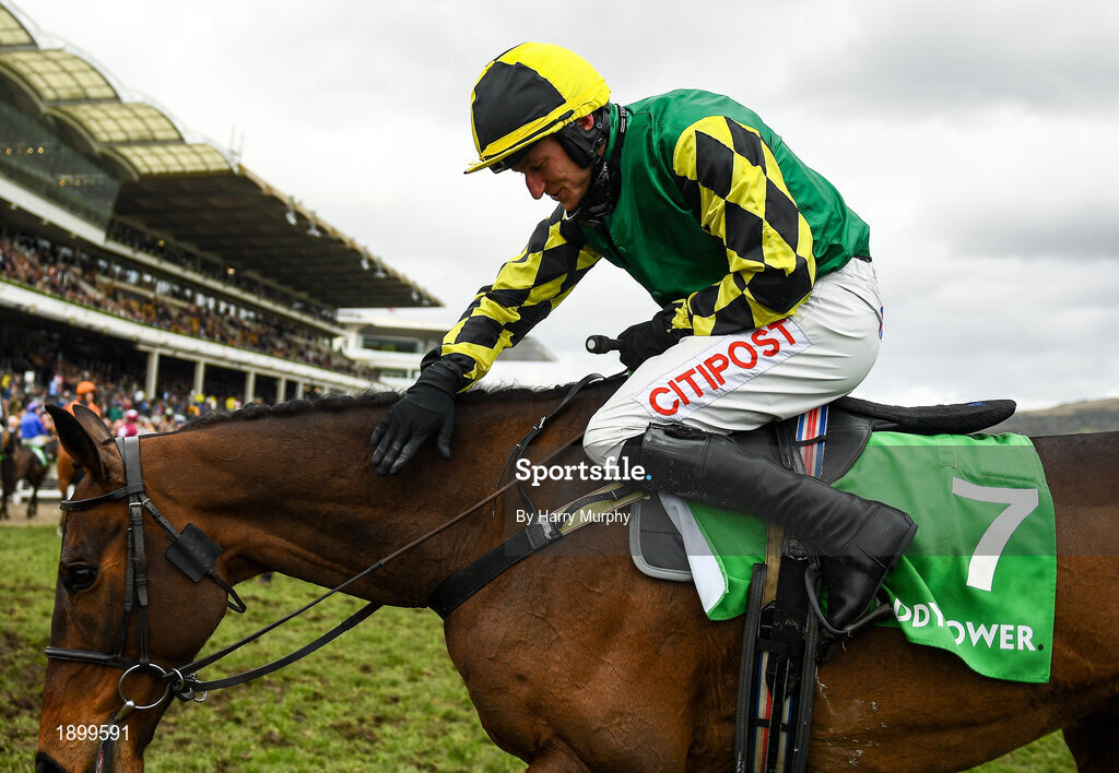 12 March 2020; Adam Wedge pats Lisnagar Oscar, after winning the Paddy Power Stayers' Hurdle on Day Three of the Cheltenham Racing Festival at Prestbury Park in Cheltenham, England. Photo by Harry Murphy/Sportsfile