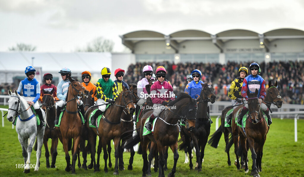 12 March 2020; Runners and riders gather at the start of the Paddy Power Stayers' Hurdle on Day Three of the Cheltenham Racing Festival at Prestbury Park in Cheltenham, England. Photo by David Fitzgerald/Sportsfile