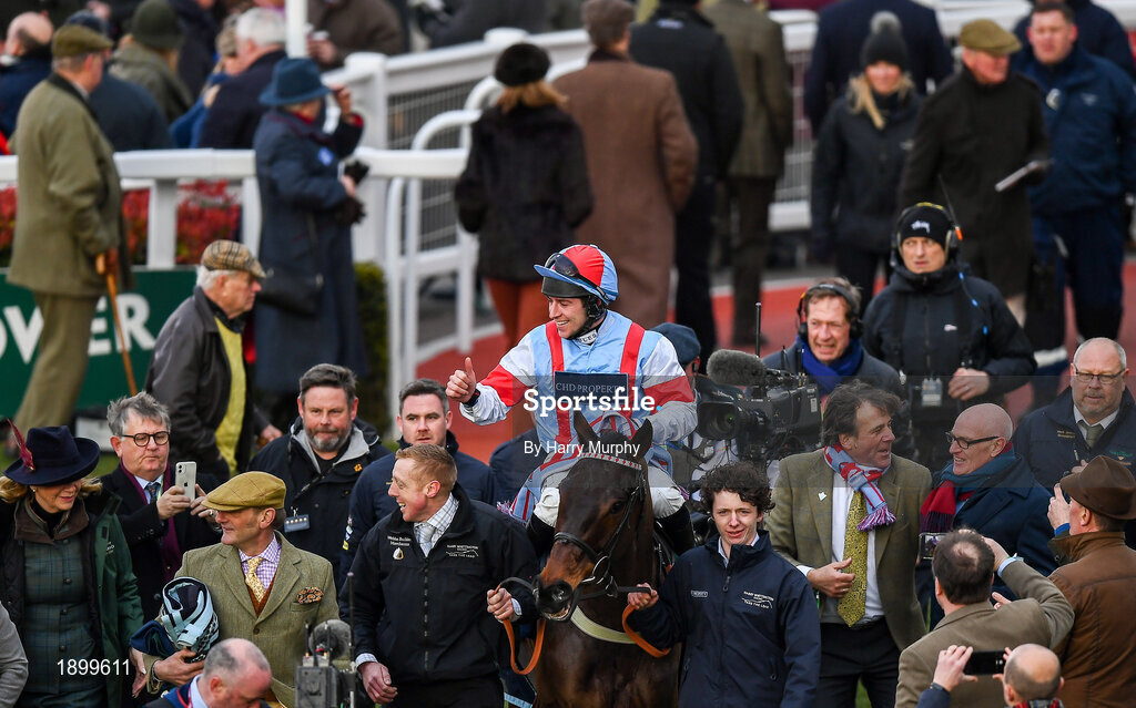 12 March 2020; Gavin Sheehan on Simply The Betts, celebrate after winning the Brown Advisory & Merriebelle Stable Plate Handicap Chase on Day Three of the Cheltenham Racing Festival at Prestbury Park in Cheltenham, England. Photo by Harry Murphy/Sportsfile