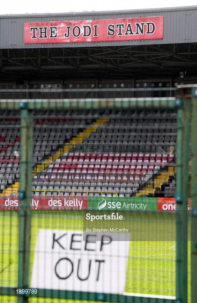 13 March 2020; A general view of Dalymount Park, home of Bohemian Football Club. Following directives from the Irish Government and the Department of Health the majority of the country's sporting associations have suspended all activity until March 29, in an effort to contain the spread of the Coronavirus (COVID-19). Photo by Stephen McCarthy/Sportsfile