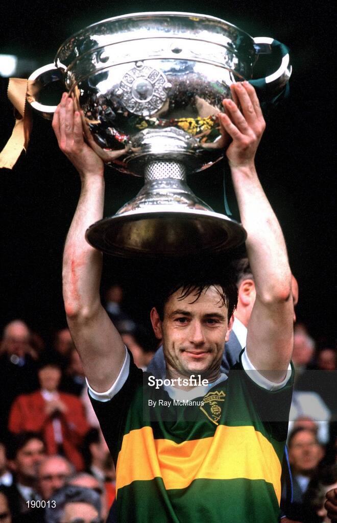 21 September 1986; Kerry captain Tommy Doyle lifts the Sam Maguire Cup after the All-Ireland Senior Football Championship final between Tyrone and Kerry at Croke Park in Dublin. Photo by Ray McManus/Sportsfile