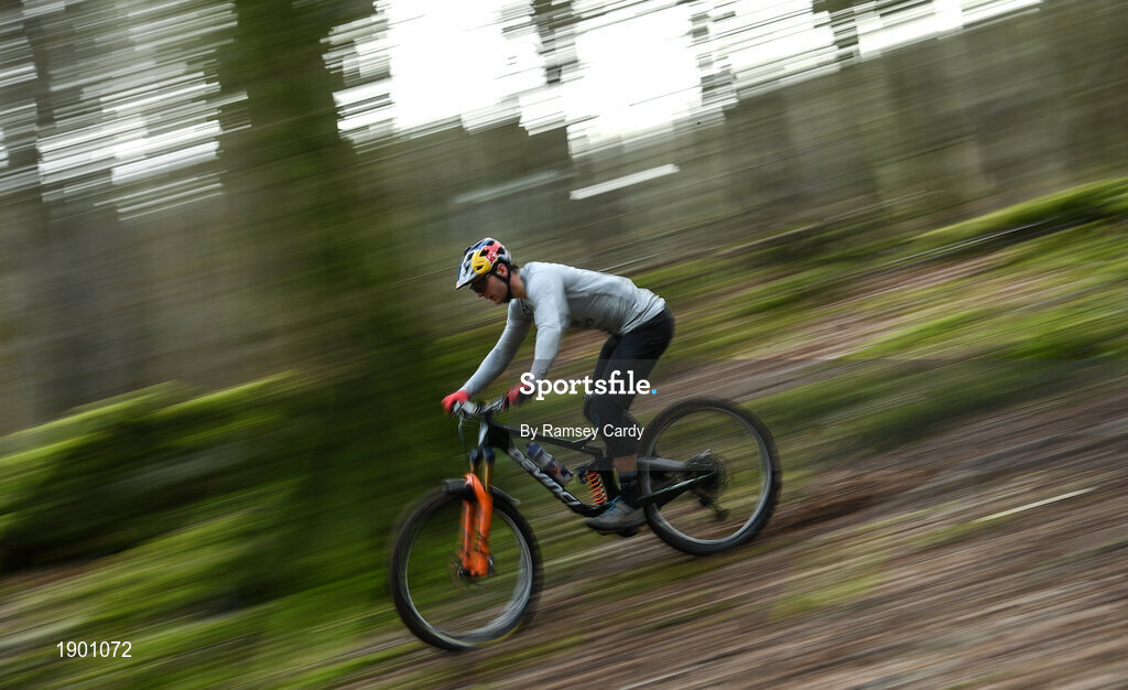 19 March 2020; Enduro mountain bike rider, Greg Callaghan, during a training session at his home in Dublin. He is currently training at home, following the postponement of the opening two rounds of the Enduro World Series, in Columbia and Chile. Photo by Ramsey Cardy/Sportsfile