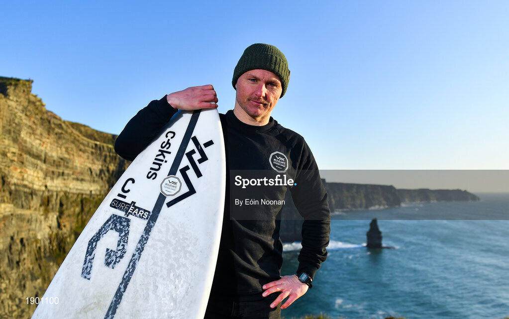 19 March 2020; Professional big wave surfer Ollie O'Flaherty poses for a portrait at the Cliffs of Moher, Clare. Photo by Eóin Noonan/Sportsfile