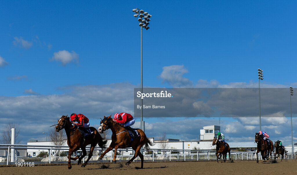20 March 2020; Reverberation, left, with Gavin Ryan up, on their way to winning the Winter Series Awards Day Saturday 4th April Apprentice Handicap, ahead of Tyrconnell, second from left, with Shane Crosse up, at Dundalk Racecourse in Co Louth. Photo by Sam Barnes/Sportsfile