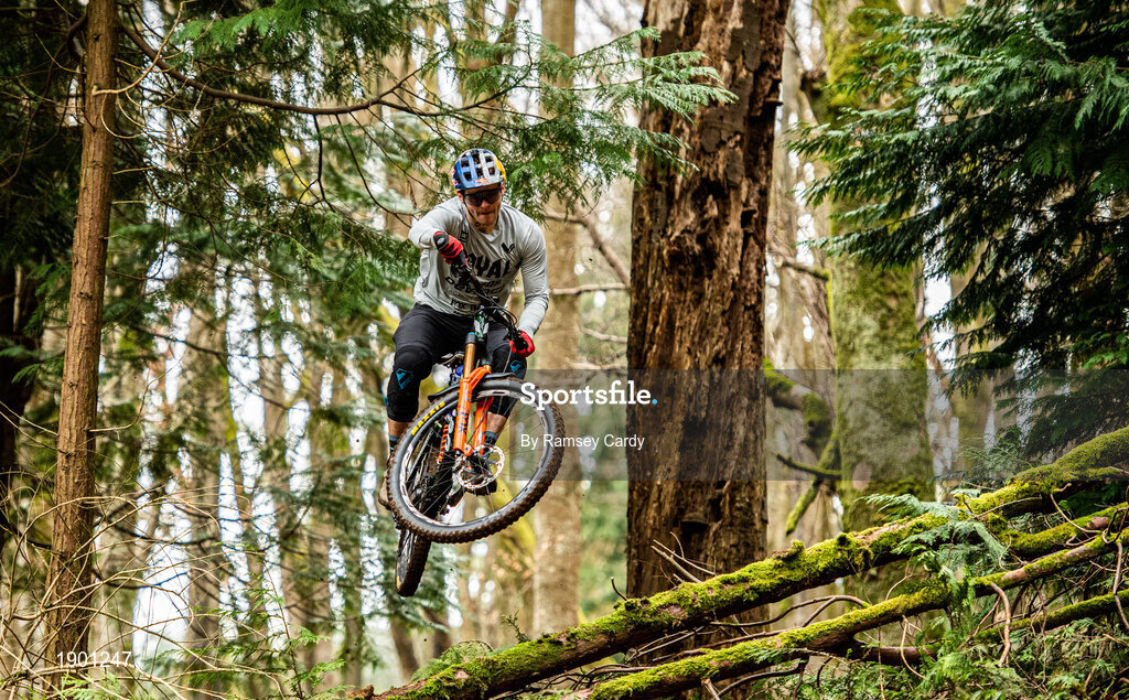 19 March 2020; Enduro mountain bike rider, Greg Callaghan, during a training session at his home in Dublin. He is currently training at home, following the postponement of the opening two rounds of the Enduro World Series, in Columbia and Chile. Photo by Ramsey Cardy/Sportsfile