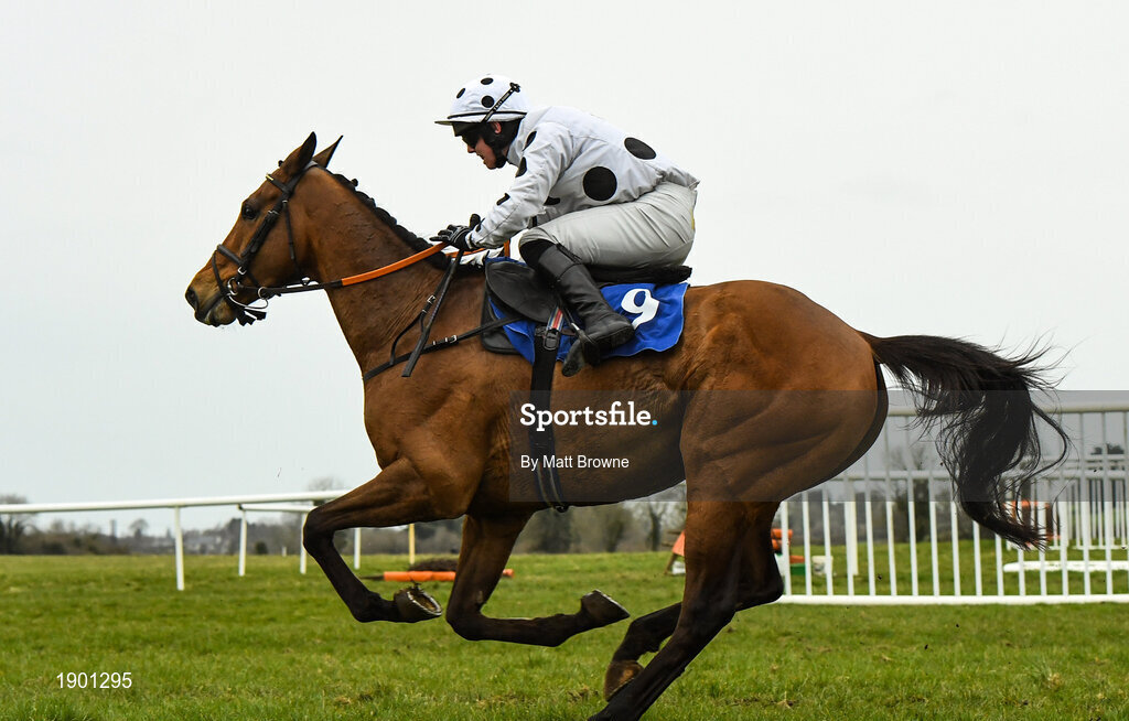 21 March 2020; Well Joey, with Darragh O'Keeffe up, on their way to winning The Duggan Veterinary Handicap Steeplechase after jumping the last at Thurles Racecourse in Tipperary. Photo by Matt Browne/Sportsfile