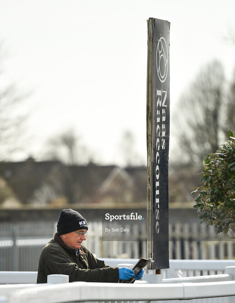 23 March 2020; Racecourse steward Tom Morgan studies the form prior to racing at Naas Racecourse in Naas, Co Kildare. Photo by Seb Daly/Sportsfile