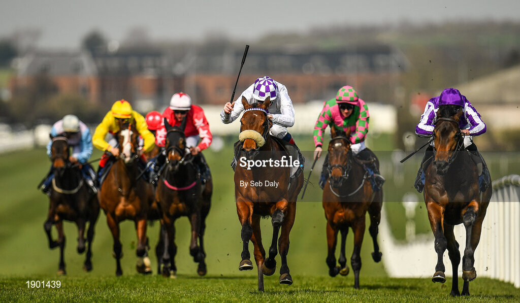 23 March 2020; Poetic Flare, centre, with Kevin Manning up, on their way to winning the Irish Stallion Farms EBF Maiden at Naas Racecourse in Naas, Co Kildare. Photo by Seb Daly/Sportsfile