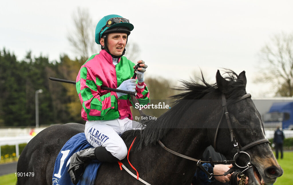 23 March 2020; Jockey Chris Hayes is led into the winners enclosure after winning the Naas Racecourse Business Club Madrid Handicap on In From The Cold at Naas Racecourse in Naas, Co Kildare. Photo by Seb Daly/Sportsfile