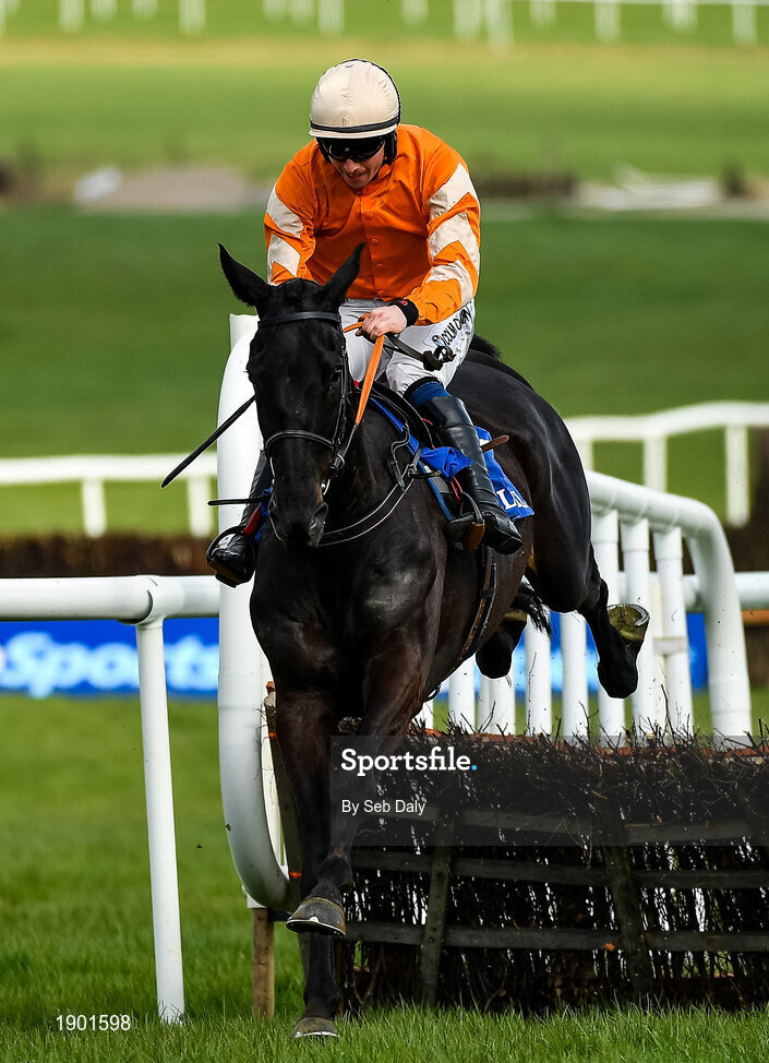 24 March 2020; Farmix, with Donagh Meyler up, jumps the last on their way to winning the Money Back On The BoyleSports App Maiden Hurdle at Clonmel Racecourse in Clonmel, Tipperary. Photo by Seb Daly/Sportsfile