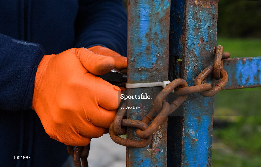 24 March 2020; Groundsman TJ Leahy locks the gates following racing at Clonmel Racecourse in Clonmel, Tipperary. Photo by Seb Daly/Sportsfile