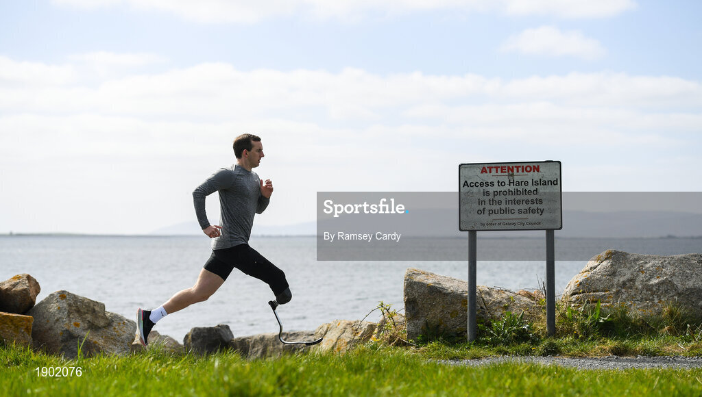 14 April 2020; Para-athlete Alex Lee during a training session near his home at Ballyloughane Strand in Renmore, Galway. Photo by Ramsey Cardy/Sportsfile