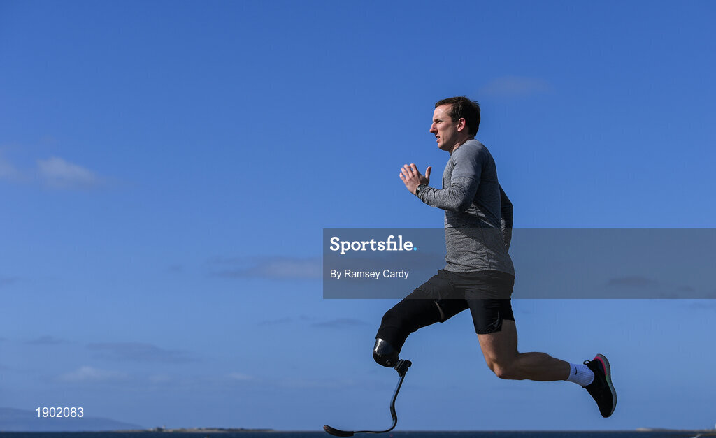 14 April 2020; Para-athlete Alex Lee during a training session near his home at Ballyloughane Strand in Renmore, Galway. Photo by Ramsey Cardy/Sportsfile