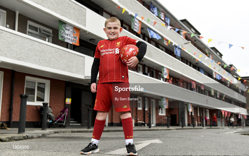 17 June 2020; NOW TV surprised Liverpool superfan Sean McCabe (11) and the residents of Canon Mooney Gardens in Ringsend with a special message from Liverpool legend Jamie Carragher. To show its appreciation for their enduring community spirit, NOW TV also gifted all residents with NOW TV Sky Sports Passes so that they can watch the returning football games. Premier League action returns with a double-header today and all the action is available to stream on NOW TV. Pictured is Sean McCabe in Canon Mooney Gardens in Dublin. Photo by Sam Barnes/Sportsfile
