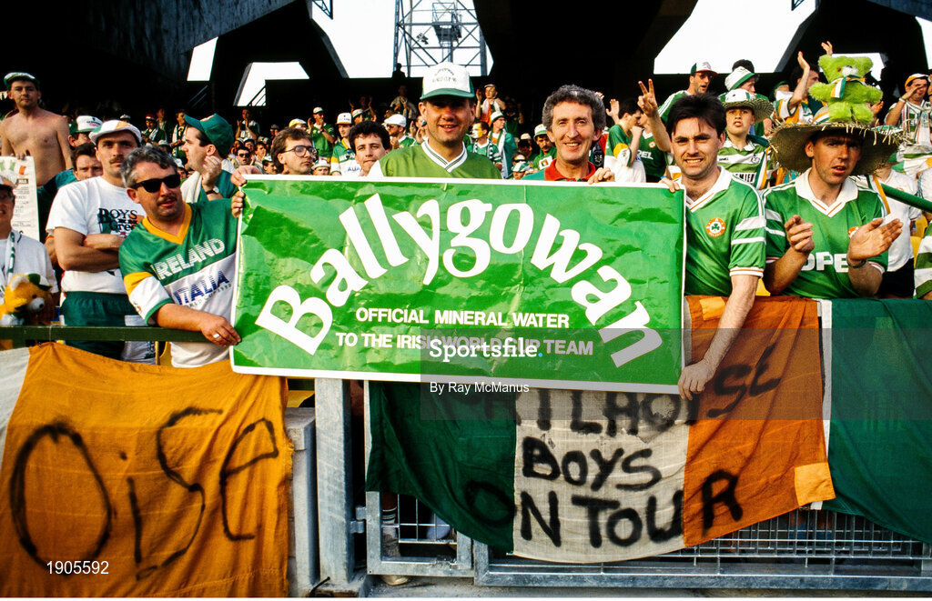 25 June 1990; Republic of Ireland supporters during the FIFA World Cup 1990 Round of 16 match between Republic of Ireland and Romania at the Stadio Luigi Ferraris in Genoa, Italy. Photo by Ray McManus/Sportsfile