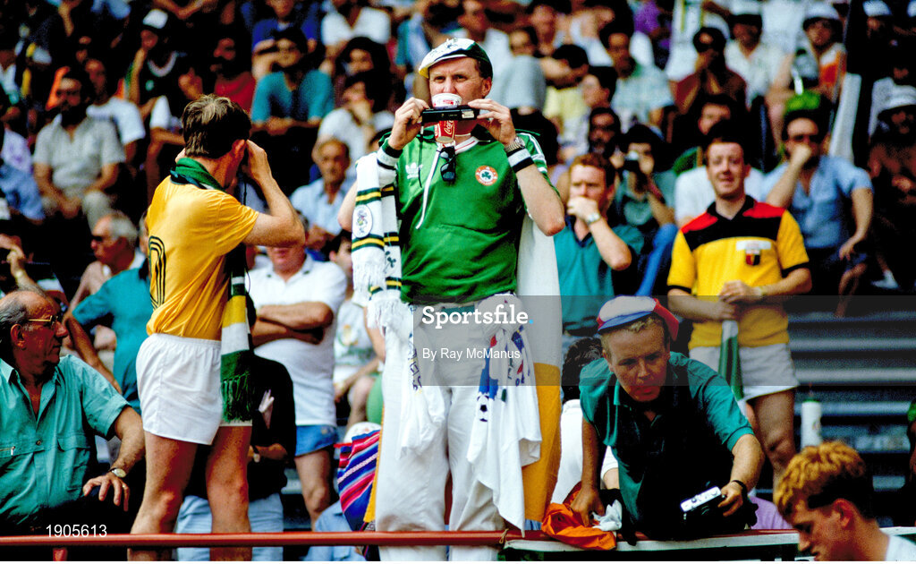 25 June 1990; Republic of Ireland supporters during the FIFA World Cup 1990 Round of 16 match between Republic of Ireland and Romania at the Stadio Luigi Ferraris in Genoa, Italy. Photo by Ray McManus/Sportsfile