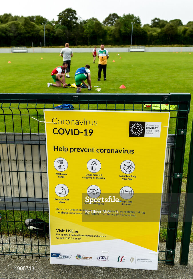 25 June 2020; A general view of a sign during a Glenswilly GAA Club training session at Glenkerragh in Donegal. Following approval from the GAA and the Irish Government, the GAA released its safe return to play protocols, allowing pitches to be opened for non contact training on 24 June and for training and challenge games to resume from 29 June. On March 25, the GAA announced the cessation of all GAA activities and closures of all GAA facilities under their jurisdiction upon directives from the Irish Government in an effort to contain the Coronavirus (COVID-19) pandemic. Photo by Oliver McVeigh/Sportsfile