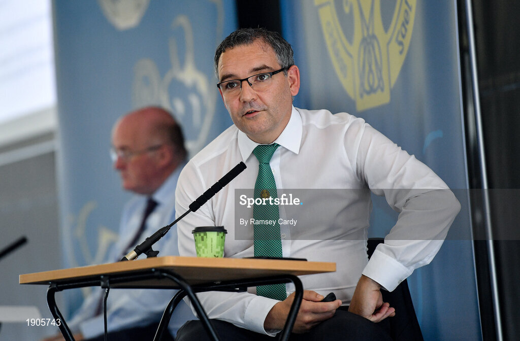26 June 2020; Fergal McGill, Director of Player, Club & Games Administration, during the GAA fixtures press conference at Croke Park in Dublin. The GAA announced that inter-county fixtures will resume on October 17. Following approval from the GAA and the Irish Government, the GAA released its safe return to play protocols, allowing pitches to be opened for training and challenge games from 29 June. On March 25, the GAA announced the cessation of all GAA activities and closures of all GAA facilities under their jurisdiction upon directives from the Irish Government in an effort to contain the Coronavirus (COVID-19) pandemic. Photo by Ramsey Cardy/Sportsfile