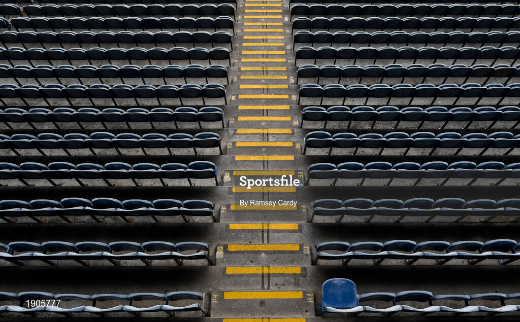 26 June 2020; A general view of empty seats at Croke Park in Dublin. The GAA announced that inter-county fixtures will resume on October 17. Following approval from the GAA and the Irish Government, the GAA released its safe return to play protocols, allowing pitches to be opened for training and challenge games from 29 June. On March 25, the GAA announced the cessation of all GAA activities and closures of all GAA facilities under their jurisdiction upon directives from the Irish Government in an effort to contain the Coronavirus (COVID-19) pandemic. Photo by Ramsey Cardy/Sportsfile