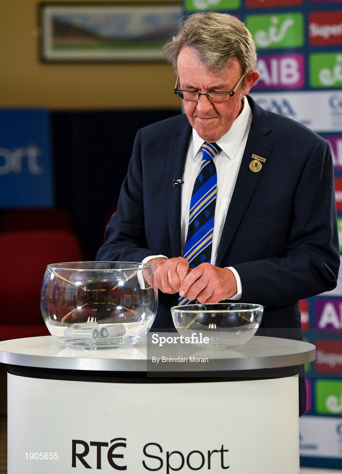 26 June 2020; Chairman of the Munster Council of the GAA Liam Lenihan during the Munster Championship Draws at Leinster Council offices on Mountmellick Road in Portlaoise, Laois. The GAA have announced that inter-county fixtures will resume with the final rounds of the Allianz Leagues on 17/18 October and the Munster and Leinster Hurling Championships on 24/25 October and Provincial Football Championships on weekend of 31October/1 November culminating with the All-Ireland Senior Hurling and Football Finals in December. On March 25, the GAA announced the cessation of all GAA activities and closures of all GAA facilities under their jurisdiction upon directives from the Irish Government in an effort to contain the Coronavirus (COVID-19) pandemic. Photo by Brendan Moran/Sportsfile