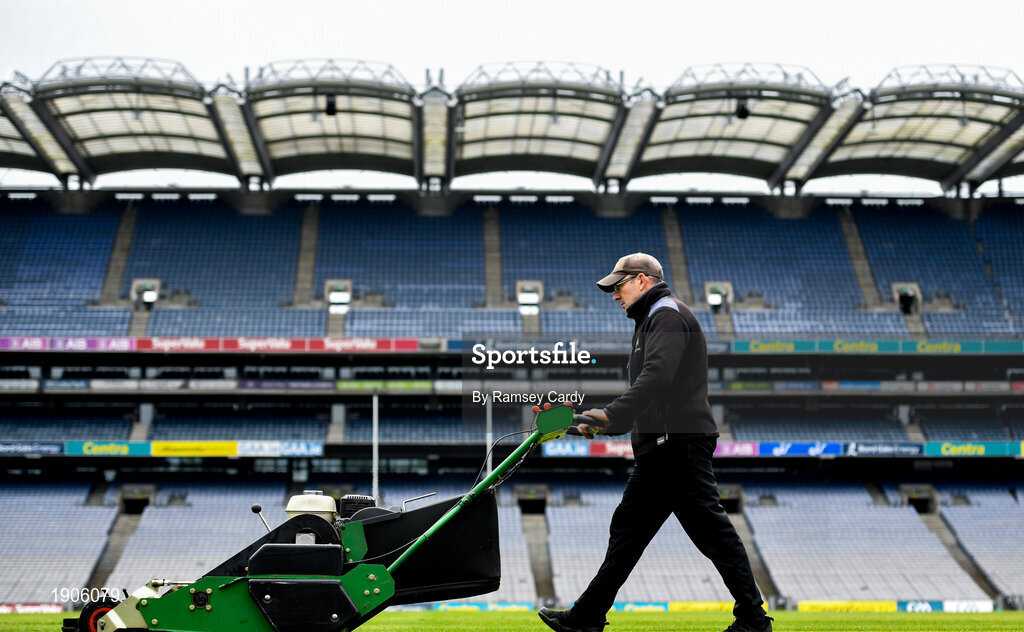 29 June 2020; Groundsman Enda Colfer prepares the Croke Park pitch. The inspiring Stadium Tour, thrilling Skyline Tour and treasured GAA Museum are now open to the public. With the GAA All-Ireland Senior Championships postponed until October, this is your only chance to visit Croke Park this summer, making them this season’s hottest tickets! For more see www.crokepark.ie/tours. Photo by Ramsey Cardy/Sportsfile