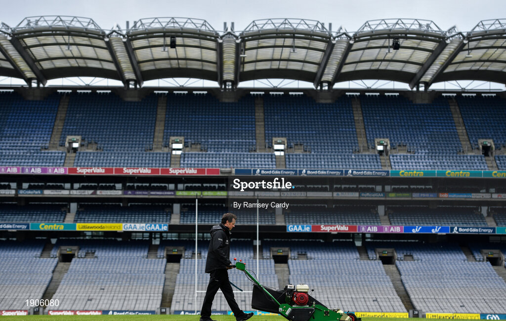 29 June 2020; Deputy head groundsman Colm Daly prepares the Croke Park pitch. The inspiring Stadium Tour, thrilling Skyline Tour and treasured GAA Museum are now open to the public. With the GAA All-Ireland Senior Championships postponed until October, this is your only chance to visit Croke Park this summer, making them this season’s hottest tickets! For more see www.crokepark.ie/tours. Photo by Ramsey Cardy/Sportsfile