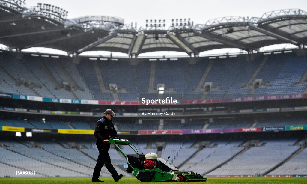 29 June 2020; Groundsman Enda Colfer prepares the Croke Park pitch. The inspiring Stadium Tour, thrilling Skyline Tour and treasured GAA Museum are now open to the public. With the GAA All-Ireland Senior Championships postponed until October, this is your only chance to visit Croke Park this summer, making them this season’s hottest tickets! For more see www.crokepark.ie/tours. Photo by Ramsey Cardy/Sportsfile