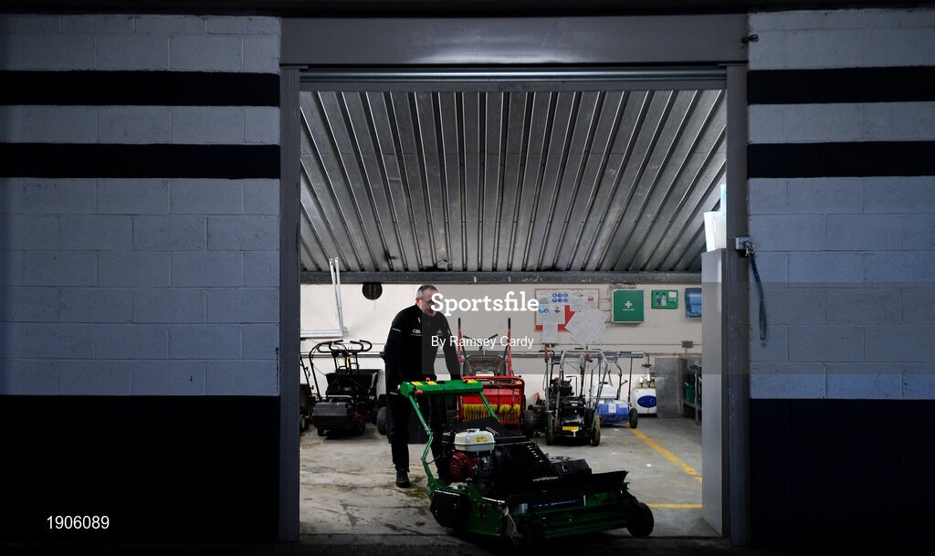 29 June 2020; Groundsman Enda Colfer prepares to cut the Croke Park pitch. The inspiring Stadium Tour, thrilling Skyline Tour and treasured GAA Museum are now open to the public. With the GAA All-Ireland Senior Championships postponed until October, this is your only chance to visit Croke Park this summer, making them this season’s hottest tickets! For more see www.crokepark.ie/tours. Photo by Ramsey Cardy/Sportsfile