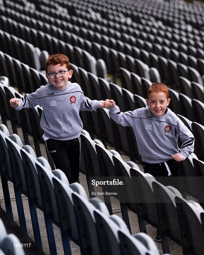 29 June 2020; Twins Thomas, left, and Daniel Gribbin, aged 7 from Castledawson in Derry celebrate the reopening of the GAA Museum and Tours at Croke Park. The inspiring Stadium Tour, thrilling Skyline Tour and treasured GAA Museum are now open to the public. With the GAA All-Ireland Senior Championships postponed until October, this is your only chance to visit Croke Park this summer, making them this season’s hottest tickets! For more see www.crokepark.ie/tours Photo by Sam Barnes/Sportsfile