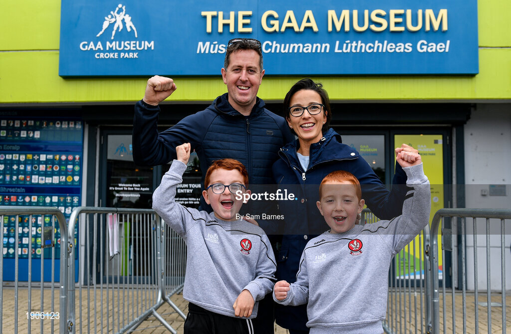 29 June 2020; The Gribbin family, clockwise from left, Michael, Siobhan, and Twins, Daniel and Thomas, aged 7, from Castledawson in Derry, celebrate being one of the first families to visit after the reopening of the GAA Museum and Tours at Croke Park. The inspiring Stadium Tour, thrilling Skyline Tour and treasured GAA Museum are now open to the public. With the GAA All-Ireland Senior Championships postponed until October, this is your only chance to visit Croke Park this summer, making them this season’s hottest tickets! For more see www.crokepark.ie/tours Photo by Sam Barnes/Sportsfile