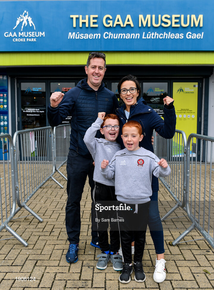 29 June 2020; The Gribbin family, clockwise from left, Michael, Siobhan, and Twins, Daniel and Thomas, aged 7, from Castledawson in Derry, celebrate being one of the first families to visit after the reopening of the GAA Museum and Tours at Croke Park. The inspiring Stadium Tour, thrilling Skyline Tour and treasured GAA Museum are now open to the public. With the GAA All-Ireland Senior Championships postponed until October, this is your only chance to visit Croke Park this summer, making them this season’s hottest tickets! For more see www.crokepark.ie/tours Photo by Sam Barnes/Sportsfile