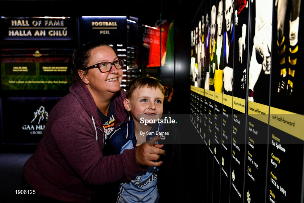 29 June 2020; Tara Davis and her son Ethan, aged 7, from Kinnegad in Westmeath enjoy the reopened GAA Museum at Croke Park. The inspiring Stadium Tour, thrilling Skyline Tour and treasured GAA Museum are now open to the public. With the GAA All-Ireland Senior Championships postponed until October, this is your only chance to visit Croke Park this summer, making them this season’s hottest tickets! For more see www.crokepark.ie/tours. Photo by Sam Barnes/Sportsfile